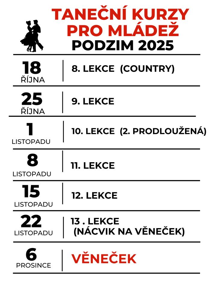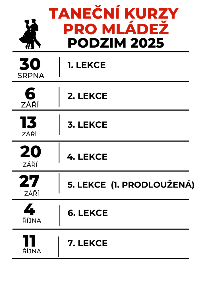 Zápis do TANEČNÍCH KURZŮ PRO MLÁDEŽ podzim 2025 proběhne v týdnu od 17. do 22. března v hronovském Informačním centru.