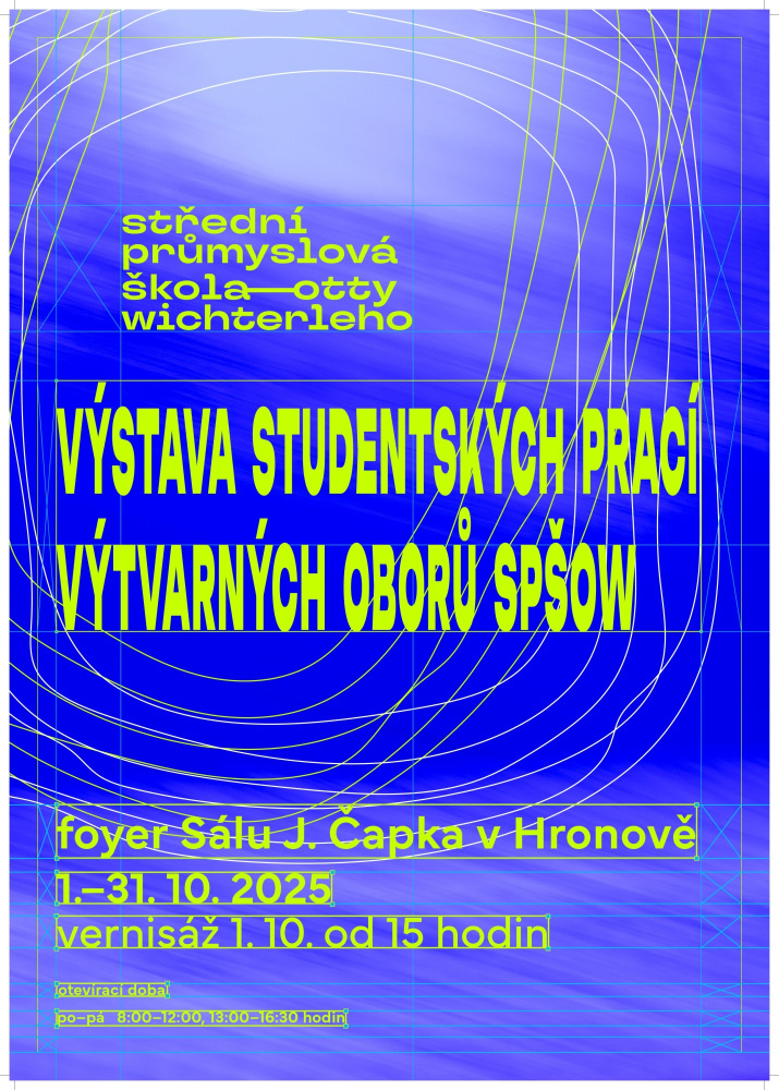 Výstava nabídne pestrou kolekci studentských děl výtvarných oborů školy a jejich ateliérů. Předmět výtvarná příprava představí kresby, zátiší a tradiční grafické techniky. Předmět písmo ukáže ruční písemné variace a kompozice, modelování přinese keramické práce. V rámci alternativní tvorby vznikla plátna a obrazy reagující na nejrůznější témata, zatímco fotografování nabídne originální snímky připravené studenty od tvorby až po tisk.